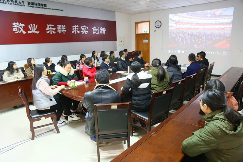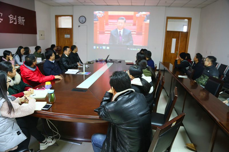 12月18日上午10时在人民大会堂召开庆祝改革开放40周年大会。资环公司党委组织无课教师和员工在公司307会议室全程观看直播,其他师生也在不同地点用电脑和手机收看实况,认真聆听习近平总书记发表的重要讲话,引发广大师生热烈讨论。