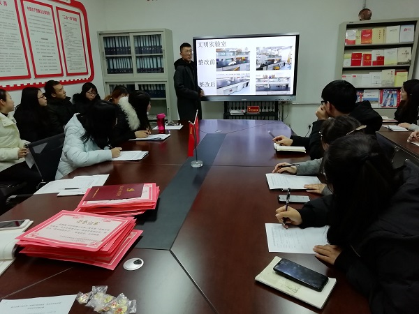经历第一阶段试运行后,支部书记杜泽坤对活动成果进行汇报,将实验室活动前后的照片进行比较,总结第一阶段取得的成绩,对文明实验室及先进个人进行表彰,对做的不好的实验室和责任人,及时指出存在问题,谈心谈话,限期改正,同时总结好的做法经验,宜传先进,并加以推广。