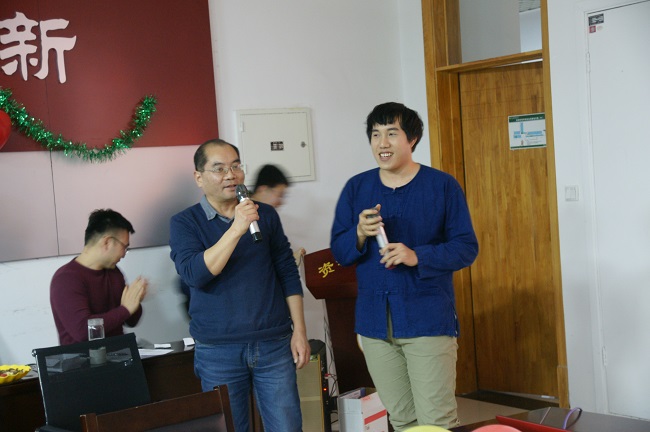 党支部书记王朝辉教授为晚会致辞,对即将到来的2019年表达了美好祝福和期许,他表示科研和生活都需要我们用心对待,用心生活的人才能家庭幸福、科研顺利;高亚军教授表示,晚会为同学们创造了一个很好的舞台,希望以后有更多的同学能积极参与,勇于展示自己;参与节目表演的预备党员侯赛宾同学谈到,我们团队的老师们不仅在科研、党政工作中表现优秀,而且十分热情亲切、多才多艺,是我们学习的榜样;硕士职工苏子轩说,这次的晚会让他听到了非常多好听的中文歌,感受到了这个大家庭的温暖;2017级研究生陈秀文在观看完晚会后即兴分别以“元旦快乐”和“万事如意”藏头作诗两首,充分表达了对各位老师和同学最真诚的祝愿: