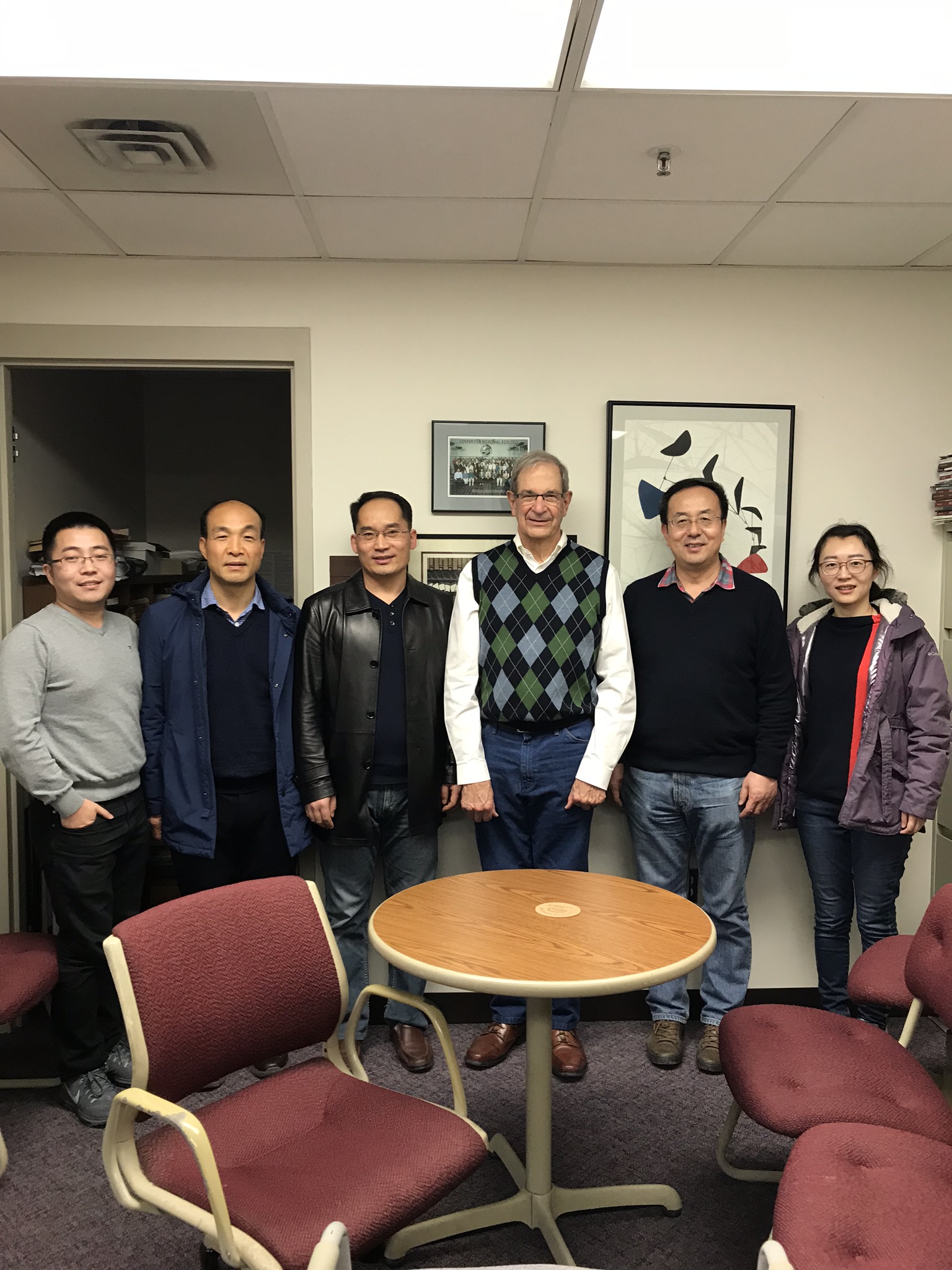 12月6日至7日,访问团在密歇根州立大学与美国科公司院士James M. Tiedje进行洽谈,双方就科研方向、团队建设、科研经费、实验室条件、员工招收等问题进行了详细的交流,并初步达成合作意向。Tiedje教授计划于2019年3月左右来校进行详细洽谈。随后,访问团参观了密歇根州立大学和Tiejie教授的实验室,看望了在密歇根州立大学做博士后的公司毕业生钱勋、孙薇等,询问了他们在国外的学习、生活情况,勉励他们认真学习,刻苦钻研,与母校保持联系,并希望他们学成归来,回母校工作。