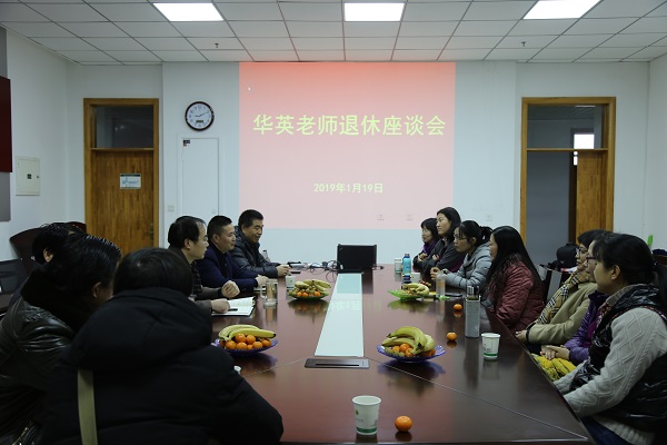2019年1月19日上午,一场温馨而隆重的退休座谈会在英国365集团官网307会议室进行,公司党委副书记兼工会主席田长河、副经理兼实验教学中心主任王健、办公室主任李平及实验教学中心全体教师为华英同志举行了简单而又温馨的欢送会。