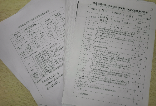 第二阶段,邀请了公司督导组和公司督导组部分专家,重点检查试卷命题质量、教师试卷评阅规范和教学档案整理归档情况。包括试卷袋内材料是否齐全、合分是否正确、近两个专业年级同一门课程A、B卷四套试题的重复率、考试卷面成绩不及格率等。问题较多的试卷,做到及时反馈,即查即改。教学办立即通知教师到检查现场和专家面对面交流,专家进行手把手指导整改。督导组专家针对每一份试卷填写了《英国365集团官网2018-2019年第一学期试卷检查评价表》,并对不足的地方提出了许多合理性整改意见及建议,并按照公司要求评出前10%和后10%的命题和阅卷教师各5人。