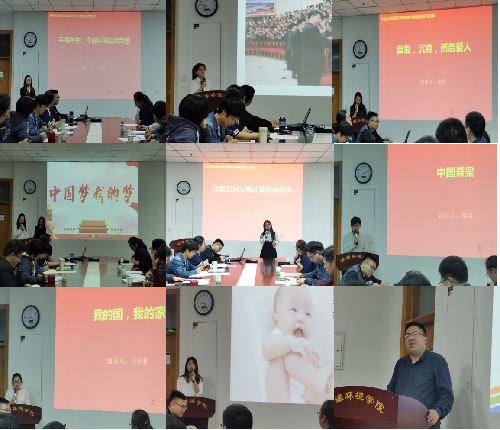 大赛在每位选手阐述自己对于祖国和母亲理解中拉开了序幕,首先入党积极分子李静怡以消防战士为例展开了自己对于爱国的理解,“幸得有你,今日山河无恙”正是对为祖国稳定和谐不断默默付出的人的歌颂;党员马悦以颜回家族为例,阐述了家的重要性;入党积极分子许吉利、王新媛以双人的形式,向大家生动展示了何为中国梦我的梦,以老一辈科研工作者李保国和公司赵洪璋院士为例,让大家对如何将我的梦同中国梦相结合有了一个更深的认识;入党积极分子郭瑞以朱光潜、钱学森和邓稼先为例,向大家阐明了何为中国脊梁;马小艳以“家是最小国,国是千万家”为中心,说明了自己对于国对于家的理解。激烈的角逐过后,经过评委的综合评分,马小艳和杨瑜同学荣获一等奖,许吉利、王新媛和张然同学荣获二等奖,李静怡、马悦、张欣欣和郭瑞同学荣获三等奖。