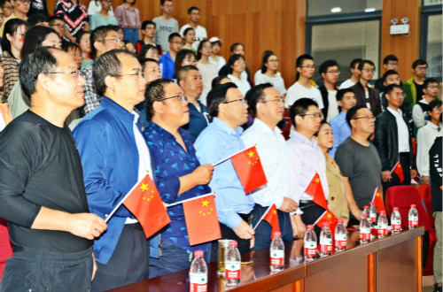 观看结束后,师生高唱《歌唱祖国》,用自己的歌声,向祖国70华诞献礼。