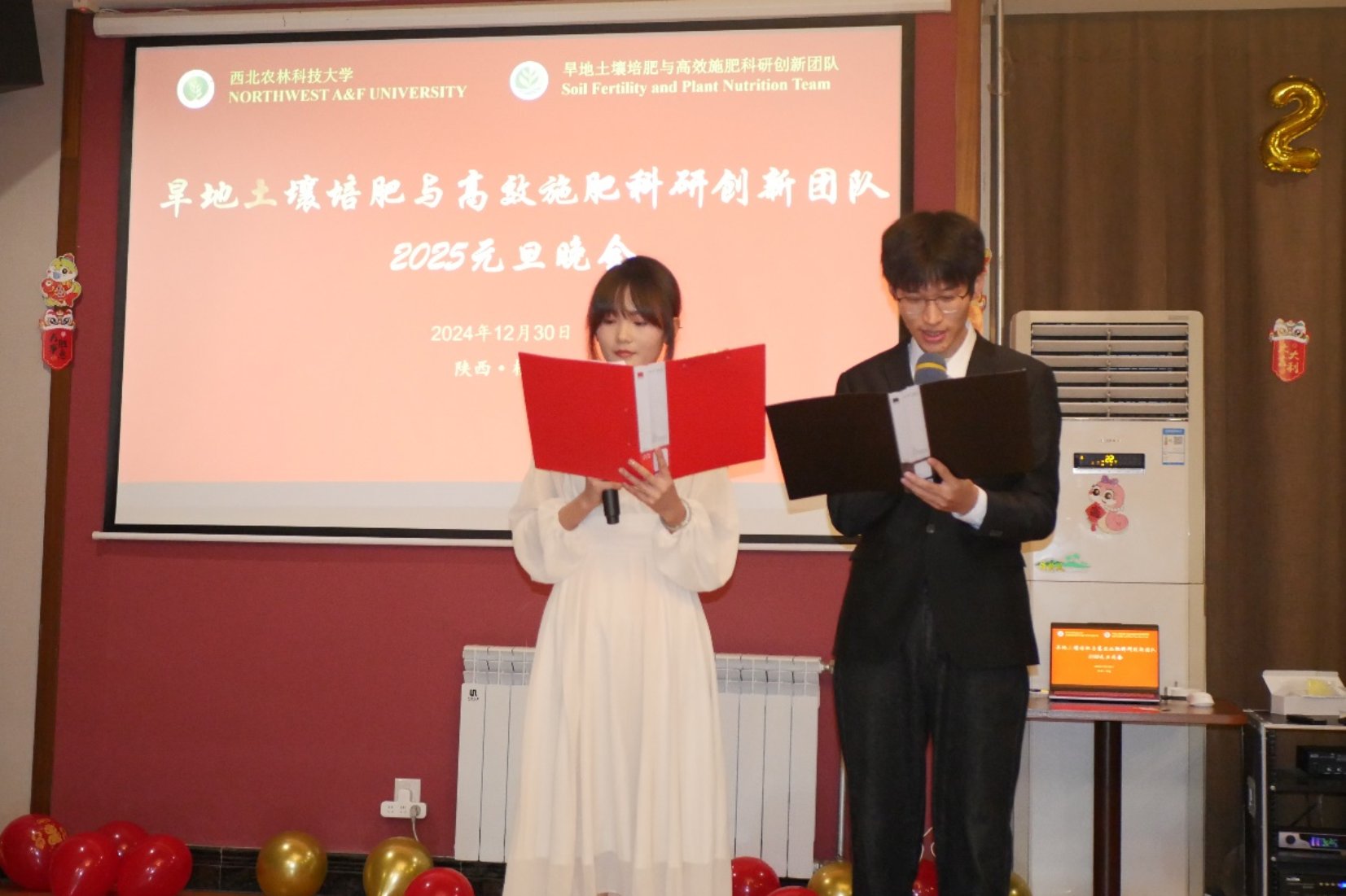 辞旧迎新际,喜乐满盈时。12月30日,欢声笑语驱散了深冬寒意,旱地土壤培肥与高效施肥科研创新团队一、二、三党支部精心筹备的元旦晚会热烈开场,团队师生齐聚一堂,共贺新年。
