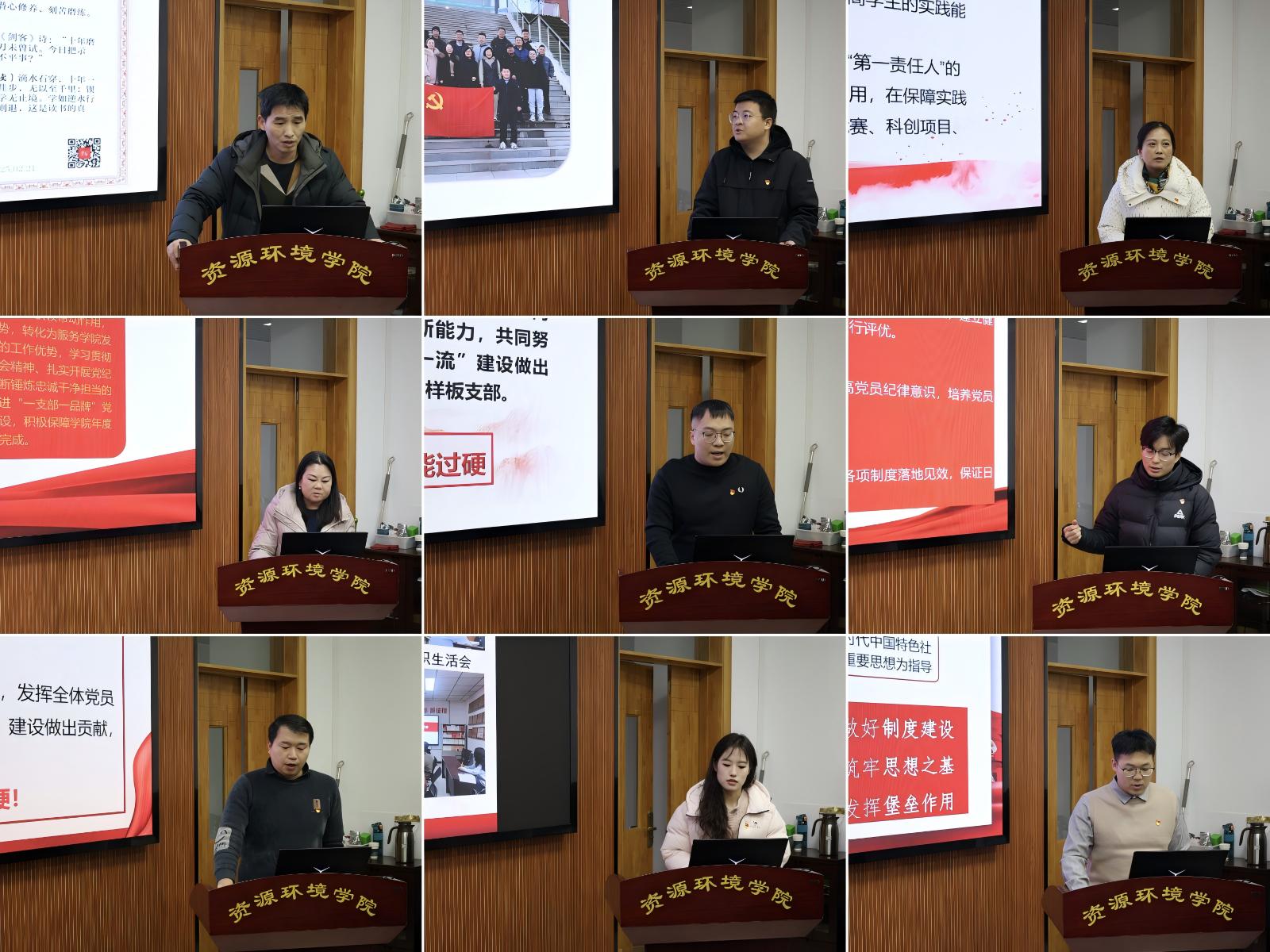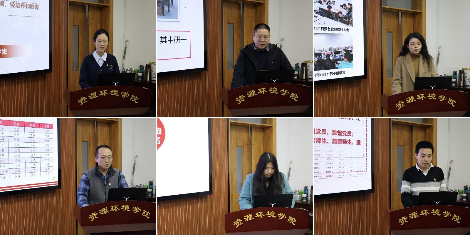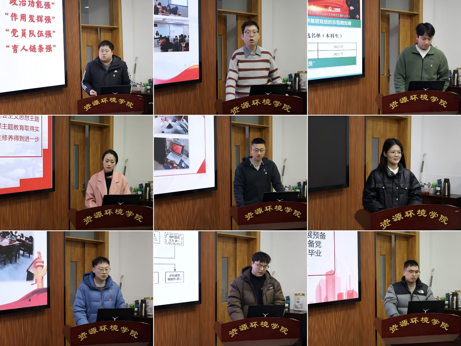 述职答辩:亮成绩、查不足、明方向。会上,24位党支部书记围绕做到“七个有力”、聚焦2024年度基层党建重点任务及特色工作、总结凝练“一支部一品牌”项目建设等方面深度交流,全面、客观地展实工作成效。教工资源党支部以高质量基层党建助推学科、专业高质量发展,以评促教,将思想政治教育和科研教学工作相融合,不断发挥教师党员在学科和公司发展的先锋模范作用;师生共建党支部——旱地土壤培肥与高效施肥科研创新团队支部根据教育部高校“双带头人”教师党支部书记“强国行”专项行动要求,党支部多举并措,全力推动党建、科研、教学与农业农村发展迈向新高度。研究生土资一党支部坚持思想引领、信仰锤炼,让“我是党课主讲人”特色品牌在8年的持续时间中历久弥新、焕发生机;本科生环工环科党支部着力打造“政治功能强、作用发挥强、党员队伍强、育人链条强”的“四强”党支部,突出政治功能、提升专业素养、强化员工党员培养质量,连续三届毕业生党员升学率均超84%。
