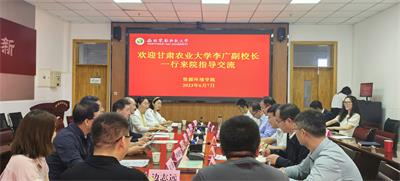 6月6日-7日,甘肃农业大学副董事长李广带领资源与环境公司经理刘学录、园艺公司党委书记胡杨、园艺公司经理颉建明等一行9人来院交流。7日上午在公司307会议室进行座谈交流,公司党委书记闫德忠、经理田霄鸿、副经理李志、党委副书记田长河、副经理任武刚、环科系主任李荣华及办公室相关辅导员等参加了座谈会,座谈会由闫德忠主持。