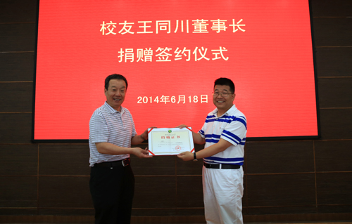 6月18日,上海川睿投资中心董事长、公司1982届土壤农化专业毕业生王同川捐资100万元以奖励公司优秀员工。当天,“王同川奖学金” 捐赠签约仪式在国际交流中心举行。