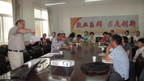 在报告中,Victor Sadras 副教授详细介绍了南澳大利亚的自然条件状况以及最新的研究进展,并且着重介绍了作物的水分利用效率和氮素利用效率对产量的影响。出席报告的师生对他的报告内容表现出了浓厚的兴趣,并与之进行了积极的交流。