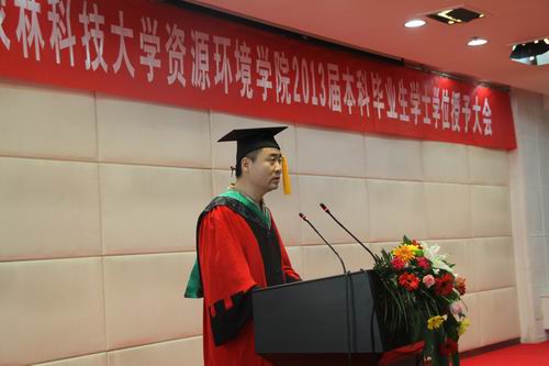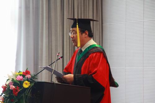 经理吕家珑教授在大会上致辞,他向毕业生们顺利完成学业表示热烈的祝贺,向对员工成长、成才付出心血的教师和家长表示诚挚谢意。吕家珑经理希望广大毕业生积极进取,求真务实,终身学习,不断完善,诚信做人,踏实做事,继续关注和支持母校的发展。母校永远支持广大毕业生。副经理高亚军宣读了《关于授予周阳等同学学士学位的决定》。
