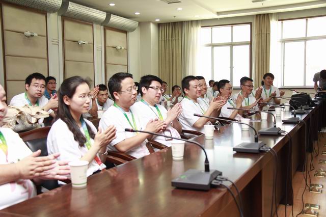 11日上午,99级土木工程员工经校园广场到达校行政中心办公楼,在210会议室,王宏武书记、高亚军副经理热情接待了各位员工。入座后,来自全国10余个省份的员工分别自我介绍,并分享了现今生活、工作状况,表达了阔别十年的感慨,并向公司赠送瓷质迎客松花瓶。高亚军副经理做出重要总结,强调了员工回访的重要性,并再次对各位员工的回访表示热烈欢迎。最后员工代表李鹏对书记、经理在端午假期抽出时间参加本次座谈会表示了感谢。