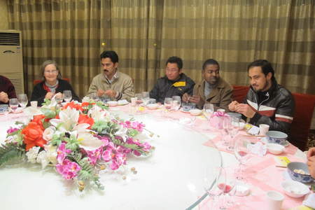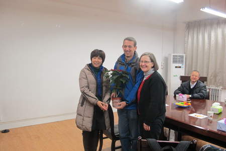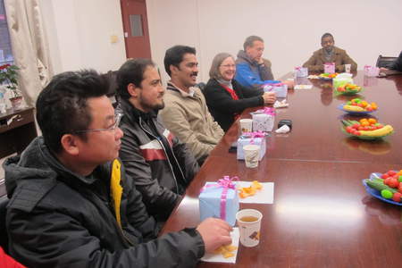 田霄鸿副经理首先代表公司对外籍教师Jeff和夫人以及全体职工致以节日的祝福,并总结了公司过去几年职工教育方面取得的成果,并向Jeff夫妇和各位职工导师的辛勤工作和尽心付出表示感谢。公司研究生院培养处王玉环副处长将精心准备的节日礼品和鲜花亲手送给Jeff夫妇。王宏武书记和吕家珑经理向各位职工和职工导师送上了公司的新年礼物。座谈会上,各位领导、职工导师和Jeff先生、Jeff夫人及职工进行了亲切的交谈,就职工培养、管理和生活等问题充分交换了意见。与会人员纷纷表示将更加努力做好职工教学管理和指导工作,为公司和公司加强国际交流作出贡献。