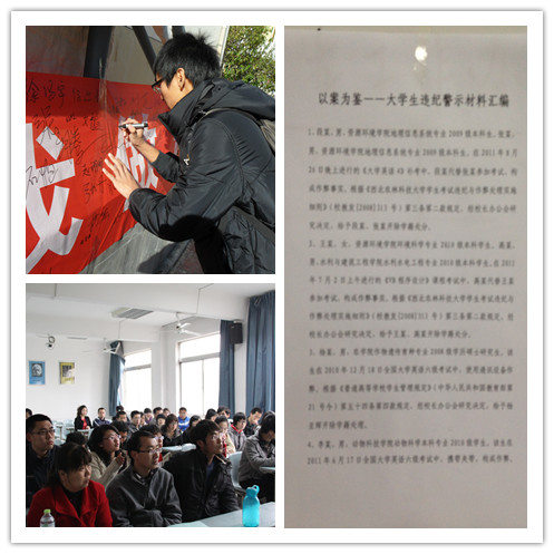 18日晚,公司班主任辅导员集中组织召开考试诚信教育专题班会,明确相关校级法规,警示员工严肃考试纪律;16日上午,公司在员工东区开展“诚信应考 从我做起”大型签名活动,培养同学们自律自强的精神;15–16日公司团工委依托团组织生活开展“支部零作弊行动”,深入讨论,积极引导员工树立正确的人生观、世界观、价值观;编制印发《以案为鉴––老员工违纪警示材料汇编》,教育员工严于律己,警钟长鸣;充分利用公司宿舍区宣传栏,引导员工以诚信考试为荣,以考试舞弊为耻。