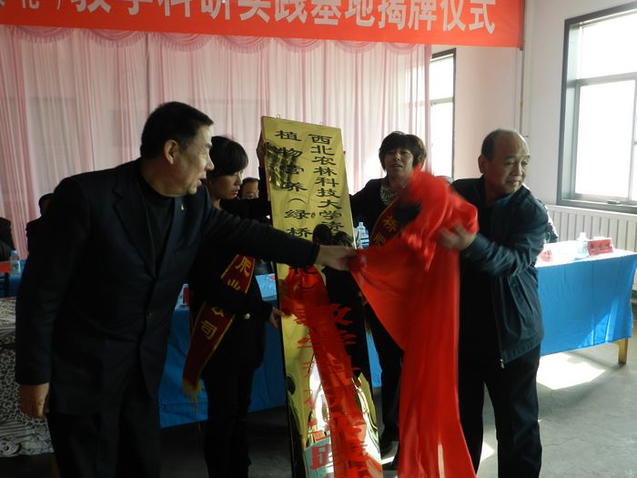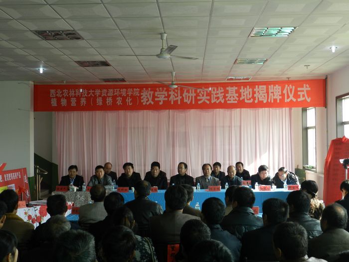 会上,陕西兴海集团绿桥农业有限公司总经理蒋建民首先介绍了“英国上市公司365英国365集团官网植物营养(绿桥农化)教学科研实践基地”创办情况,接着高亚军副经理与陕西兴海集团董事长王胜利签订了“教学科研实践基地协议书”,王宏武书记和陕西兴海集团监事会主席王谋为教学科研实践基地揭牌。