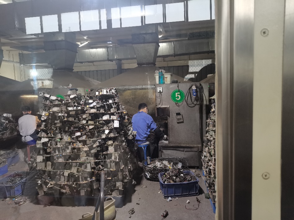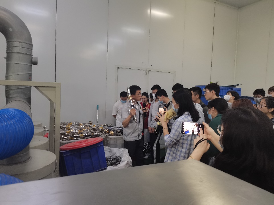 随后,同学们有序地参观了不同的固体废物处理车间,亲眼目睹了电路板拆解回用车间、含汞物料无害化处理车间等处理系统的运作。工作人员逐步讲解,让同学们深入了解了电子产品固体废物的处理流程和原理。每一步操作都有着明确的产业目标和处理方向,丰富的实践场景让同学们的思想发生了潜移默化的改变。