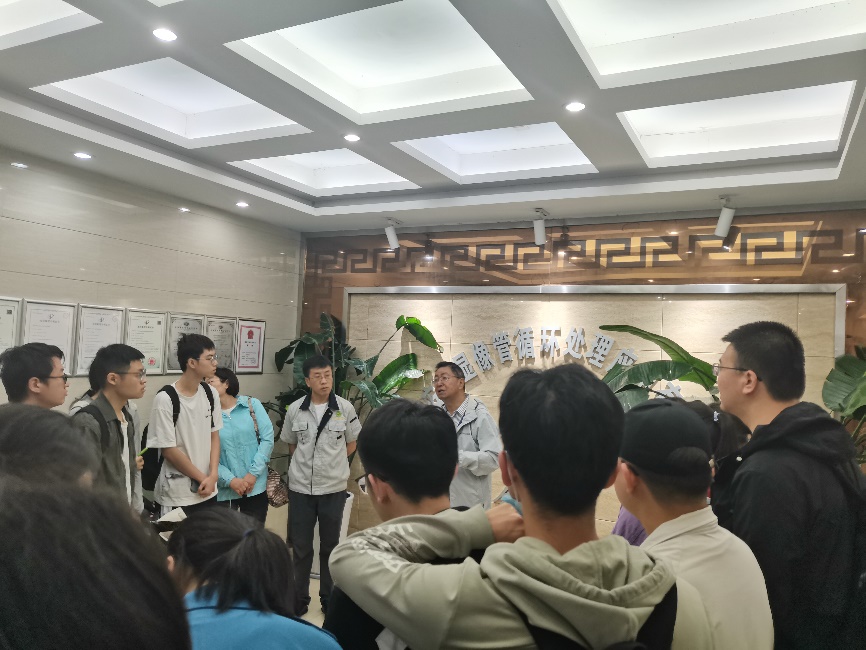 同学们紧随老师们的脚步,来到了陕西三秦环保科技股份有限公司。在工作人员的介绍中,同学们了解到,该公司的业务范围涵盖危险废物处理处置和综合利用、水泥窑协同处置、危险废物资源化利用、危废运输、突发应急救援中心处理等多个领域,同时加深了对固体废物综合处置和危险废物处理流程的了解。