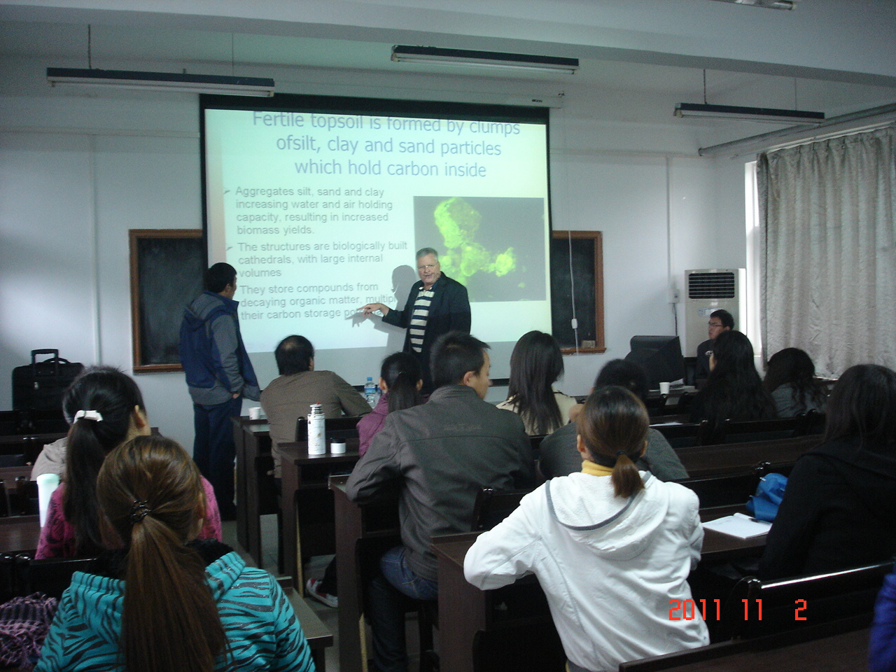 由公司耿增超教授主持的农业部948项目“生物质技术引进及消化 (2010-Z19) ”,近日邀请美国EPRIDA能源和生物科学公司总裁Danny Day先生来公司进行交流访问。11月2日下午,Danny Day先生在公司第二会议室应邀做了题为“The Thermal Conversion of Organic Waste for Soil Restoration and Carbon-Negative Dense Hydrogen Fuels (有机废弃物的热裂解作用在土壤恢复和炭减排高密度氢能源) 的学术报告。过程中的应用 Danny Day先生介绍了EPRIDA公司在有机废弃物的热裂解技术方面的工作进展,详细论述了其生物质炭产物对土壤的修复作用以及其他副产物(如氢气、生物质油等)的开发情况;并同与会师生就该创新技术的应用前景进行了讨论,其精彩报告受到一致好评。