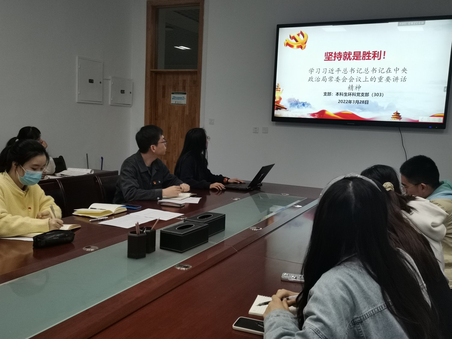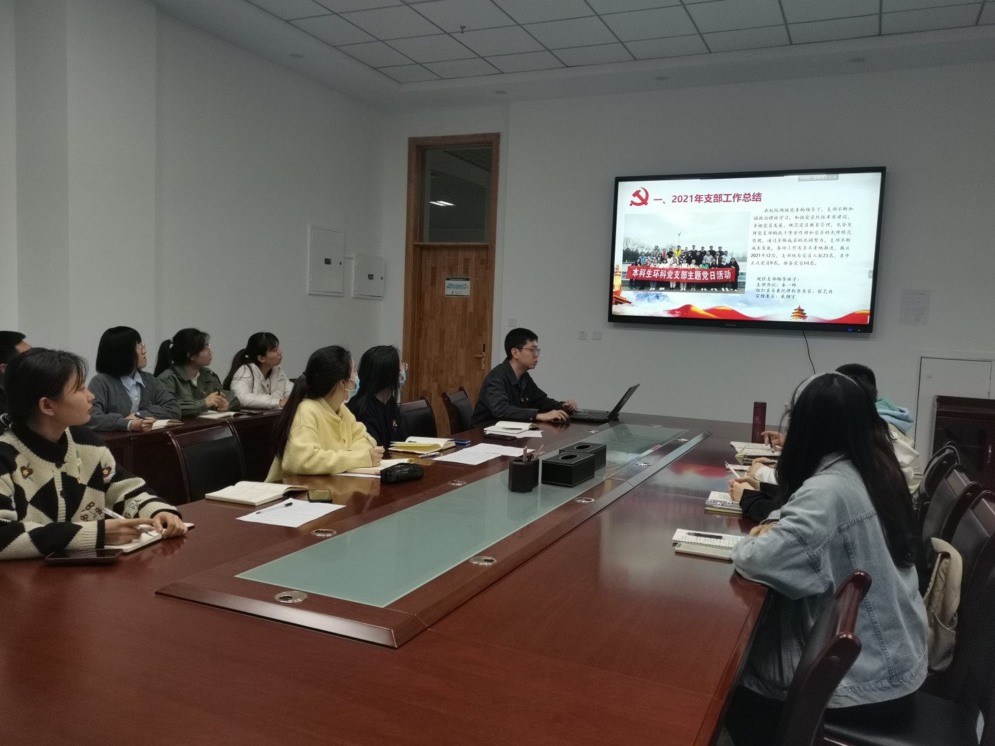 会议伊始,由本科生环科党支部书记秦一郎同志代表支委会,围绕2021年党支部工作、2022年党支部工作计划,向各位同志汇报了2021年党支部整体工作情况,强调了2021年党支部开展活动问题及整改措施和支部下一步工作重心。