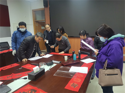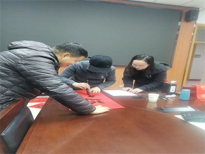"鞭炮声声迎新年,妙笔横生贴门前"。资环工会的专属福利来啦!1月17日全天在公司307会议室举办送祝福送春联活动。党委书记闫德忠、经理田霄鸿、副书记、工会主席田长河到场,为全体教工送上新春祝福。