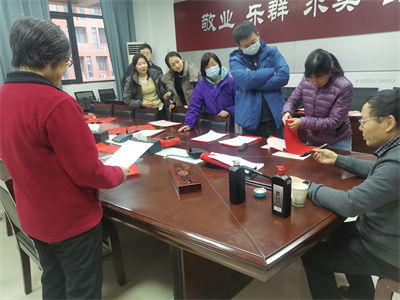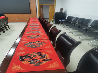 公司邀请刘德敏老师为大家挥毫泼墨书写春联。老师们手里拿着公司准备好的喜庆的红色春联纸,谈论着关于春联、书法的话题,围着刘德敏老师排着队,把春节的氛围感直接拉满整个会议室。