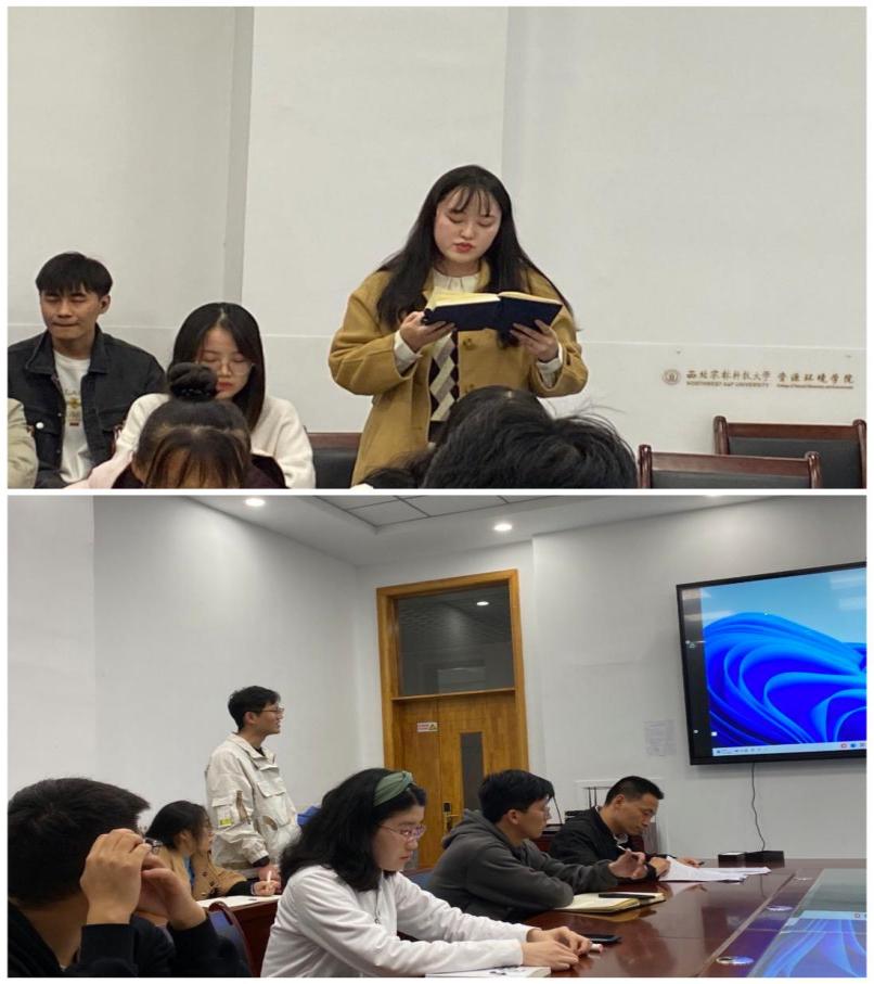 随后,预备党员雷雪儿分享学习体会,认为青年强,则国家强,作为一名新时代的西农青年,要深刻认识到青年是推动历史走向更美好世界的力量。对于从事农业科研的西子而言,更要尊重自然、顺应自然、保护自然,要努力掌握科学文化知识和专业技能,练就过硬本领,推进美丽中国建设。