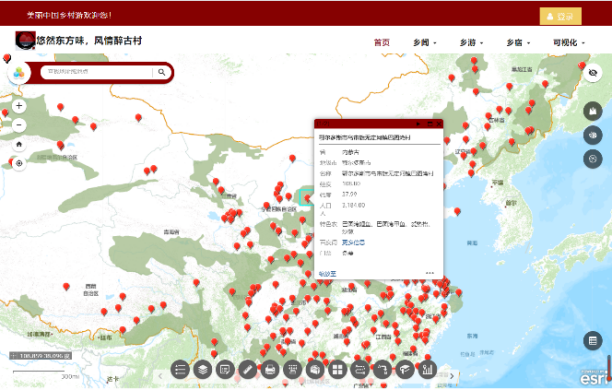 《美丽中国乡村游》由资源利用与植物保护专业、土地资源与空间信息技术专业研究生孔晓霞、徐仪玮、郑伟和地理信息科学专业本科生何彤组成的团队,在张青峰老师的指导下完成的。该项目基于乡村振兴大背景下,以全国乡村旅游重点村落为基础地理数据,结合webGL、GIS、VR等技术实现的可供游客查询、游览、体验一体化的乡村旅游与辅助规划一体化WebGIS系统。该系统从乡村旅游业现存问题出发,一方面,对首批全国旅游重点村的景点、产品进行介绍,助力乡村振兴;另一方面,系统中设计相关功能模块(乡闻、乡游、乡宿、乡谈),以提升游客体验、加大宣传力度,提供视觉参考、辅助决策者规划。