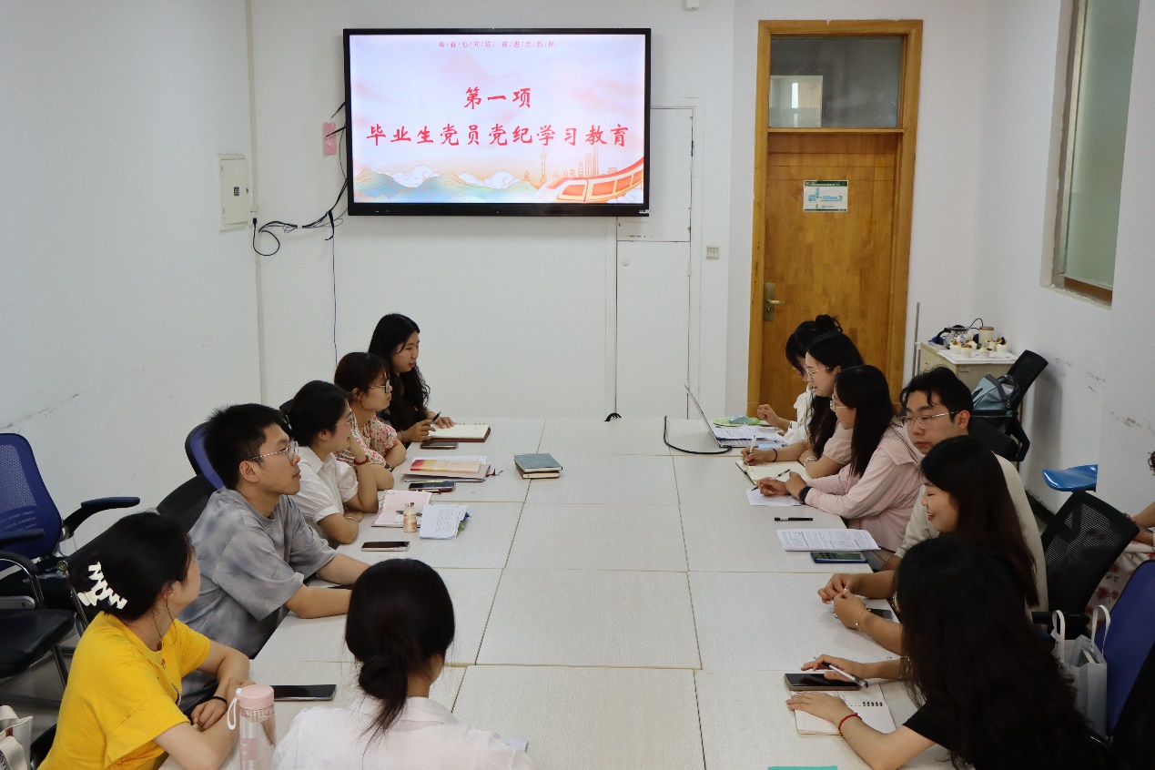活动伊始,党支部书记樊蓓蕾老师以党纪教育为切入点,强调了作为党员的责任与担当,寄语毕业生在未来的道路上不忘初心,继续前行。