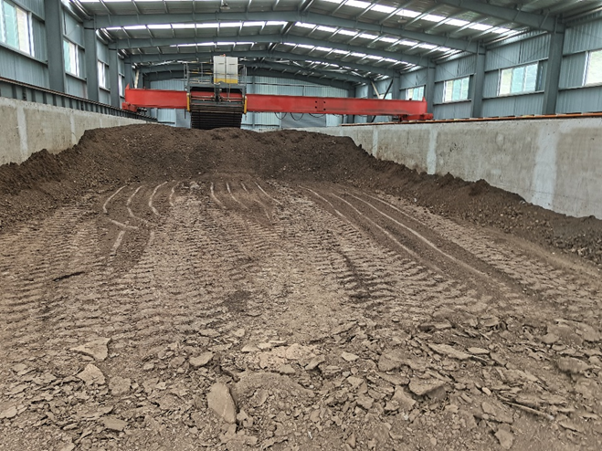 洛川畅源农业发展责任有限公司的厂区内,员工们首先看到一排整齐的车间,包括用于羊粪等废弃物堆肥处理的发酵车间和后熟处理车间等。配备有粉碎机、配料机和混料机的配料车间可对原料、腐熟堆肥、腐殖酸和硫酸铵等物料进行破碎、筛分和混合。堆肥过程中,首先将准备好的主料和辅料按照一定比例充分混合均匀,为了保证堆肥过程的顺利进行,该公司的槽式发酵系统设置了排水和通风的系统。排水管道能够及时排出多余的水分,避免堆肥过程中出现过度湿润或缺氧的情况。通风系统则调整通风量和温度,以确保堆肥过程中有足够的氧气供应和适宜的温度,促进微生物的繁殖和有机物质的降解转化。
