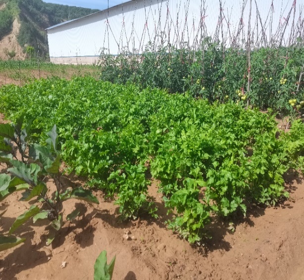 随后,工作人员带领员工们参观了该公司种植有机蔬菜的地块。由于位于海拔较高的山顶受到雨水冲刷和肥料流失的影响,土壤肥效较差,几乎无法种植蔬菜和水果。然而,试验田里的蔬菜和水果长势很好,这要归功于施用了该公司的有机肥。