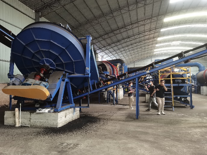 之后的制肥车间有造粒、烘干冷却和筛分等系统,其工艺流程采用"先转鼓造粒,后圆盘造粒"的方式运行,随后进行烘干和筛分。过小或过大的肥料颗粒会被筛分出来进行破碎后再利用,重新进入制肥车间的工艺流程。