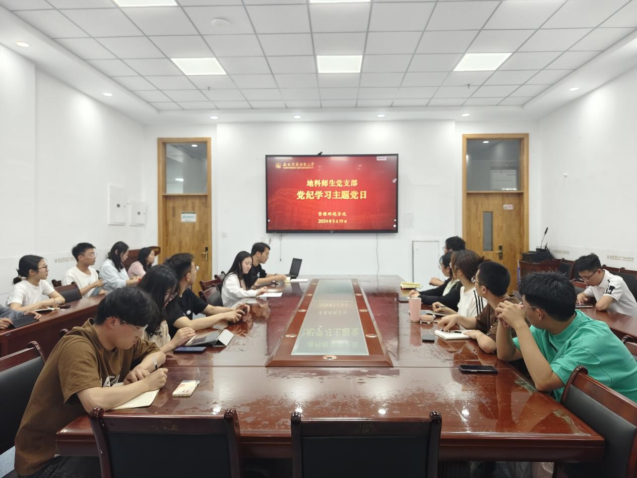 为深入学习修订后的《中国共产党纪律处分条例》(下称《条例》),加强党支部的纪律建设,地科师生党支部于5月13日召开党支部委员会,明确支部党纪学习工作的具体安排。5月19日下午,在资环院楼106会议室正式召开党纪学习主题党日。本次党日活动以贯彻学习政治纪律为主要内容,由党支部副书记陈新佳主持。
